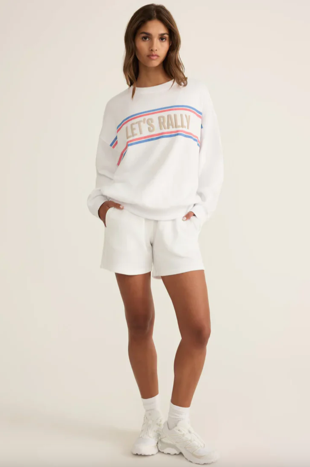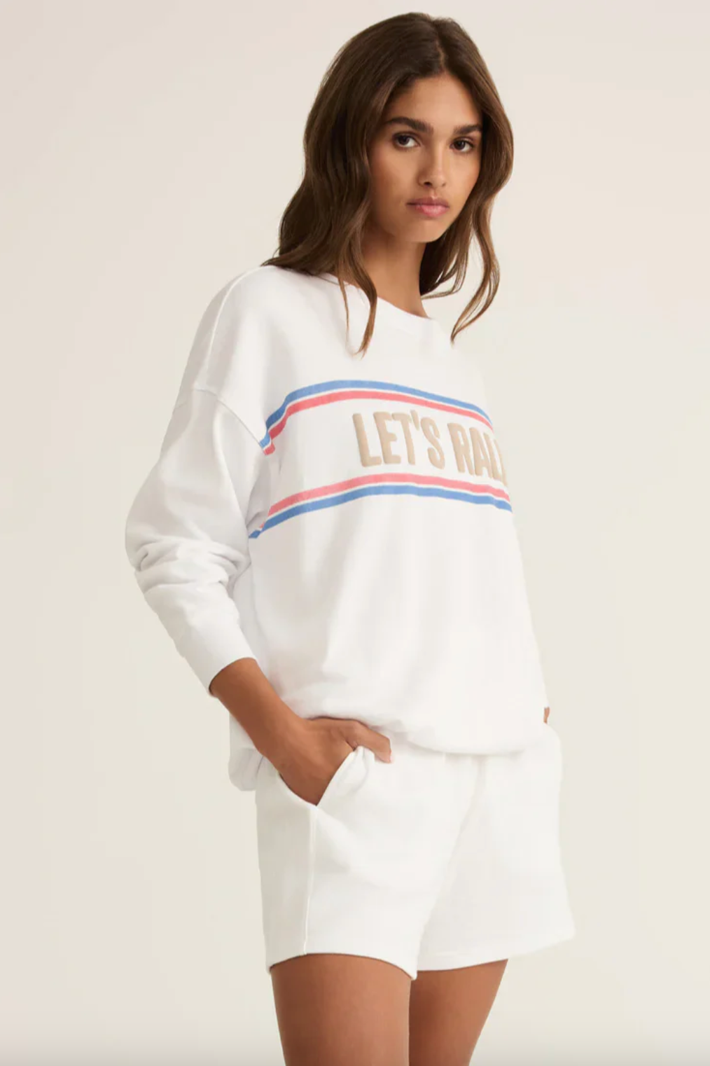Stay sporty and stylish with the Z Supply “Let’s Rally” Oversized Sweatshirt, a must-have for casual days and post-workout layers. Made from soft, 100% cotton French terry, this midweight sweatshirt offers a cozy, lived-in feel. Bold puff-ink graphics add a playful, eye-catching touch, making it the perfect combination of comfort and statement style for weekend adventures or relaxed everyday wear.