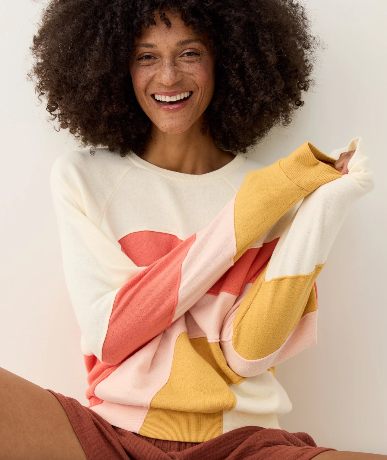 A vintage-inspired essential that combines comfort, style, and unique design. Crafted from ultra-soft, upgraded terry with a breathable yet structured feel, this sweatshirt features a custom appliqué and raglan sleeves for a timeless, lived-in look. Garment-dyed in rich, sun-faded hues, it offers the perfect balance of softness, warmth, and effortless style—ideal for layering, lounging, or weekend adventures.